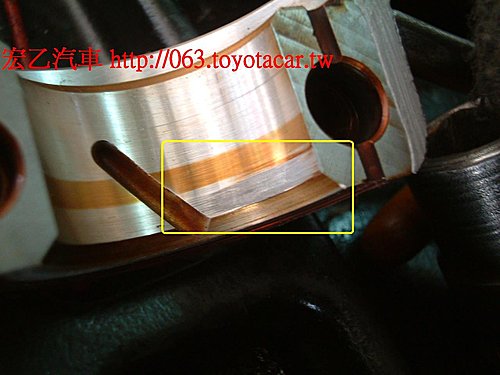 上圖黃框處就是機油噴出口,機油由油道孔出來後就會往兩側溝槽流出~