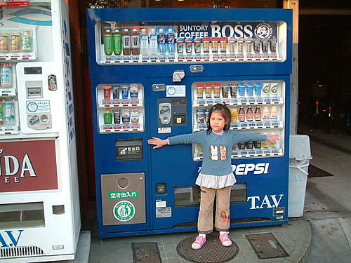 日本販賣機多樣又豐富,還有賣微波熱食~這麼大一台不多見吧??下圖這鋁罐式飲料在日本很普遍,約300CC沒喝完還能蓋回,右邊QOO是小朋友喝的瓶口加大比較方便小朋友喝、大人的(左邊)瓶口小直接含著喝(若小朋友用含著一定會倒的滿身都是)